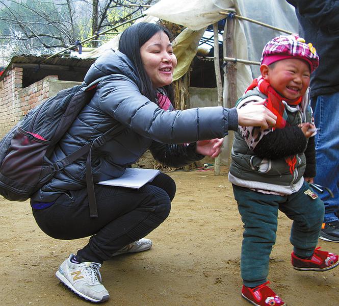 项目工作人员一走进农户,宝宝就和他们玩得很开心。