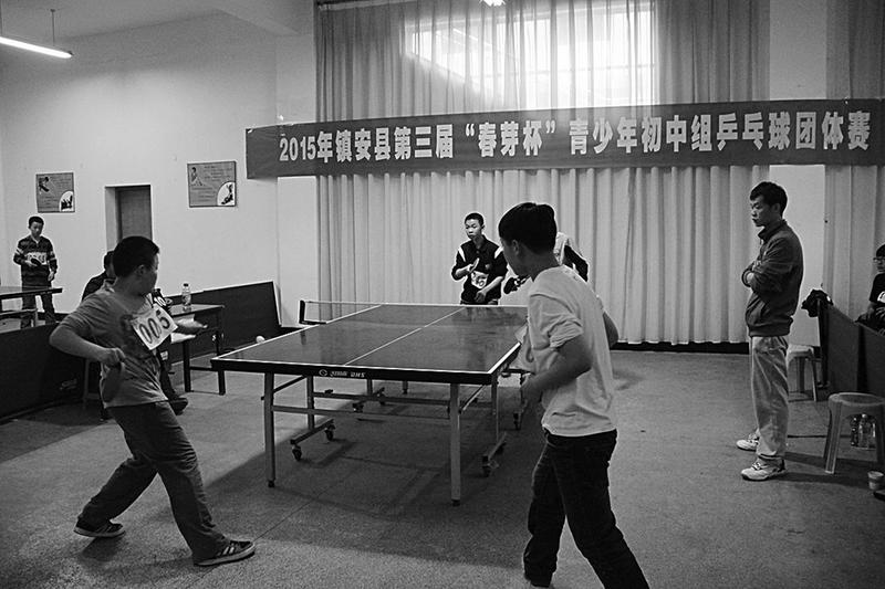 四月四日,镇安县第三届“春芽杯”青少年乒乓球团体赛在青少年校外活动中心举行,来自全县初中的十五支代表队、九十余名学生选手参加比赛。(柯岩魏华摄)
