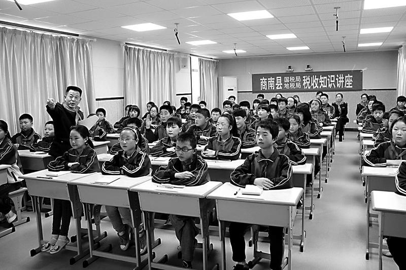 4月14日,商南县国地税联合税收宣传小分队到税收宣传教育基地——商南城关小学普及税收知识。税收宣讲员用简洁易懂的语言,通过生活中鲜活的事例,向同学们讲解了“税收取之于民用之于民”的深刻道理,鼓励同学们带税法进家庭,带动父母亲朋学税法、懂税法、守税法,弘扬法治新风尚。(党瑞朝 摄)
