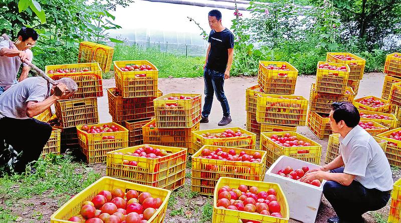 近日,洛南县景村镇杨坪村的现代化农业大棚内,西红柿、羊角蜜等蔬菜水果已进入采摘期,吸引了市内外采购商前来采购。(记者 王倩摄)