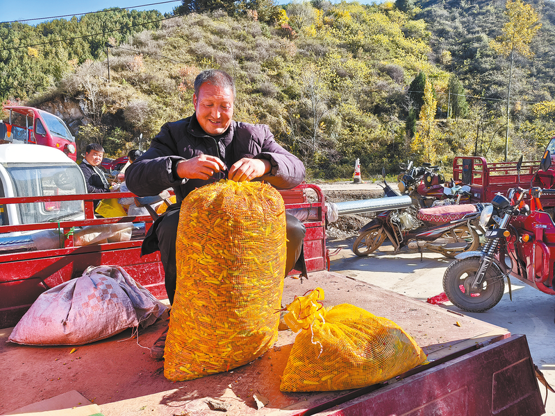 11月2日,洛南县灵口镇宽坪村在党群活动中心集中收购辣椒。宽坪村近年来全力打造标准化辣椒种植示范基地,提升辣椒产业品牌,实现烟、菜、粮“轮作倒茬”的发展模式,不断提高土地效益,有效增加群众收入。