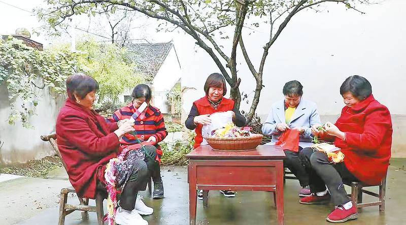李美荣(中)和乡亲们在做刺绣活市级非遗项目丹江针绣是在商南县流行的一种民间传统工艺刺绣艺术。它以布为纸、以线当墨、以针做笔,交织成一件件精美的作品,满载着世代技艺的传承和对生活的美好企盼。