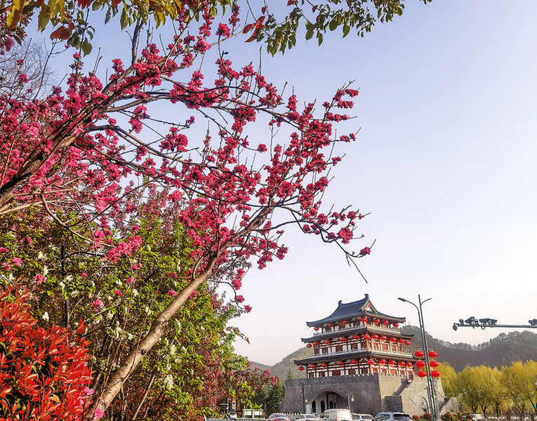 春花掩映下的商洛中心城区一景。春风执笔,饱蘸丹青,在秦岭深处轻轻一挥,商洛主城区便从冬日的沉静中醒来。