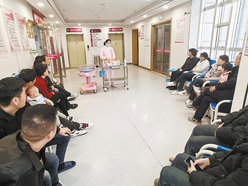 ▷产科医护人员为新生儿家属示范新生儿日常照护等实用技巧,细致解答家属疑问,以精细化服务提升群众就医体验。