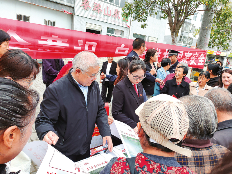 4月14日,丹凤县竹林关镇平安法治办联合辖区司法所、法庭、派出所开展第11个全民国家安全教育日宣传活动。通过现场设立咨询台,发放宣传彩页、民法典书籍以及和群众现场互动解惑的方式,进一步增强了广大群众维护国家安全意识和行动自觉。 (本报通讯员 王 蒙 摄)