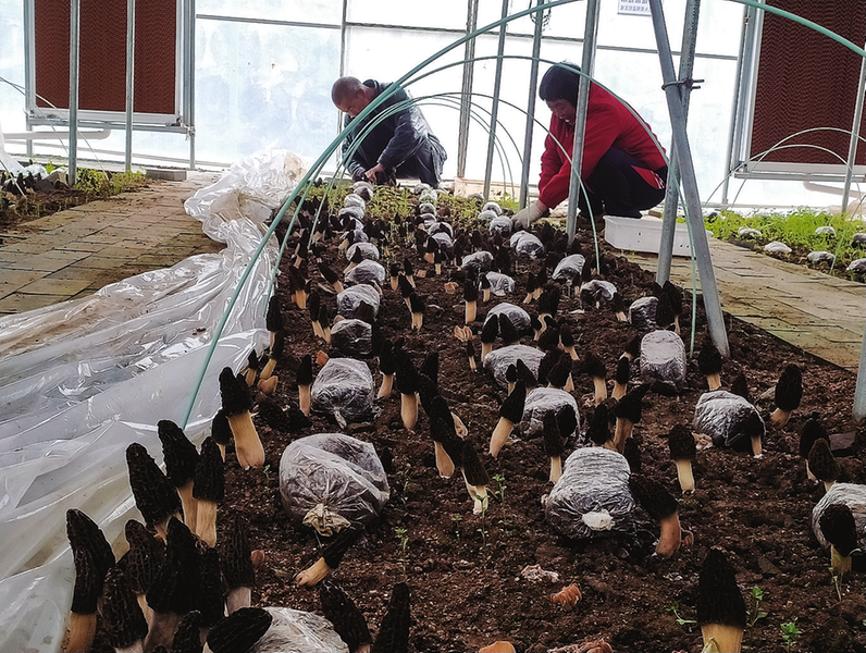 从播种到采收,科研力量全程护航,每一个环节都制定了严格的技术标准:11月中旬精准播种,冬季做好大棚保暖,次年春季出菇期严控温湿度,4月底完成采收,科学管理让羊肚菌的优良品质得以持续保持。