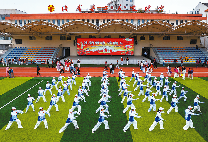 4月28日,洛南县老体协在县工人文化宫举办“礼赞劳动 欢度‘五一’”文体展演活动,旨在展现全县劳动者爱岗敬业、奋勇争先的精神风貌,营造尊重劳动、崇尚实干、关爱职工的浓厚社会氛围。 (本报通讯员 吴书怀 摄)