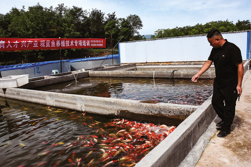 为了让更多的乡亲通过养鱼走上致富之路,贾骞还通过“以鱼还渔”的代养方式增加群众收入。洛南县洛河边有一户张姓群众,就是为贾骞代养观赏鱼,这家人通过代养观赏鱼每年增收万余元。像这样的代养户除县域内的万湾、土门等地外,贾骞还在山阳、洛南等县发展了代养户。