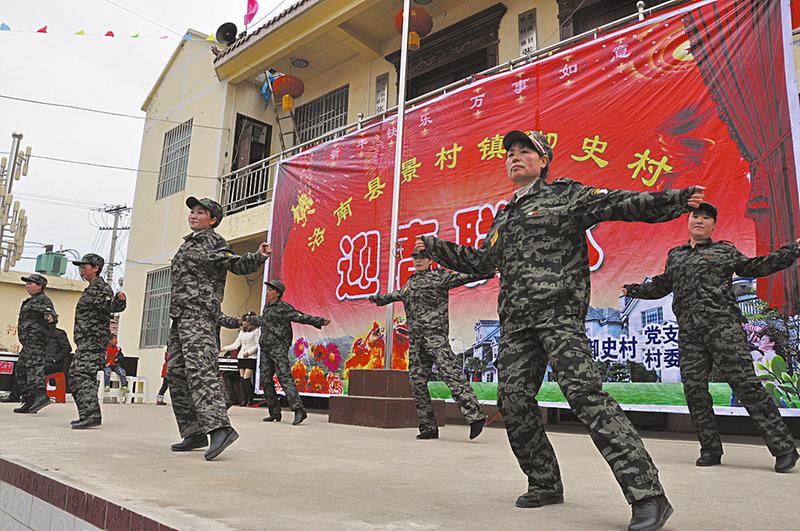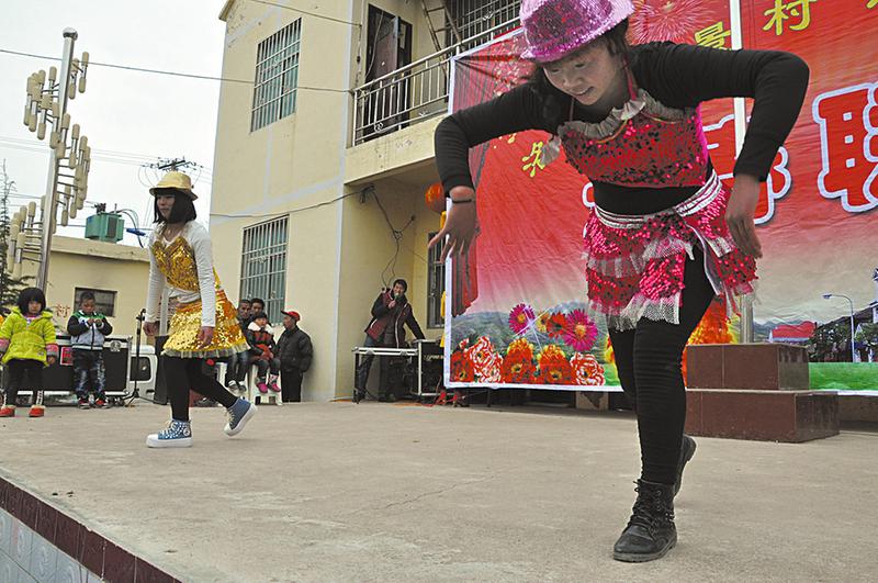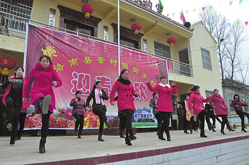 妇女们的拿手戏广场舞 2月19日,是农历乙未年(羊年)春节,天公不作美,阴沉着脸,还不时下起一阵雨夹雪。然而,在洛南县景村镇御史村的村级公共服务中心里,却是另外一番人潮汹涌、激情澎湃的热闹景象,该村正在举行以“同绘羊年春色·共筑新村梦想”为主题的新村第一届“乡村春晚”。