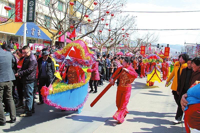 高台芯子 为传承文化,庆祝新春,3月2日,由丹凤县文广局主办,县文化馆协办,丹凤县龙驹寨镇水泉、凤麓、丹江等社区承办的2015年春节社火游艺表演活动在丹凤县城举行。舞龙、舞狮、高跷、秧歌、划船、花轿、高台芯子等节目让城区数万群众以饱眼福,使群众享受了一次酣畅淋漓的民间文化艺术大餐。