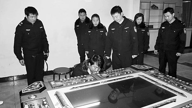 3月5日晚,丹凤文化监察大队与城关派出所联手,一举端掉2家隐蔽在县城繁华路段的黑游戏厅,捣毁赌博游戏机8台,依法传唤相关人员7人。(刘春荣 鲁青合 摄)