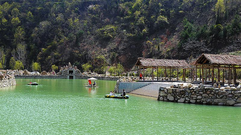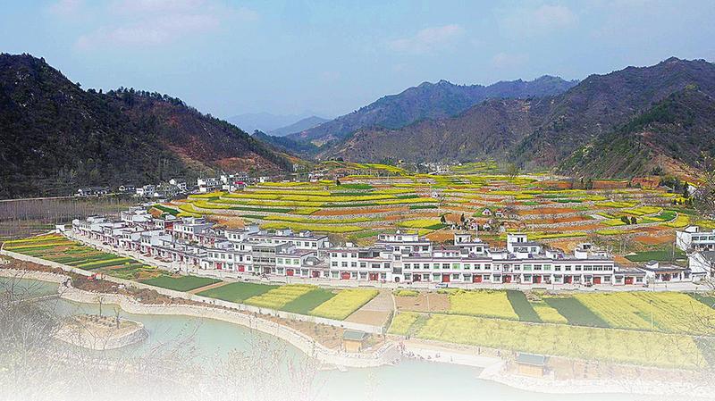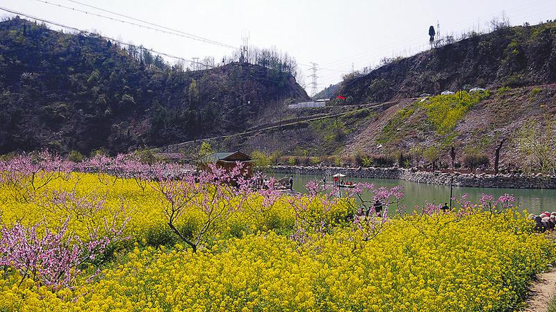 沿着清油河街道向西北而行,弯弯曲曲的水泥路藏风聚气、曲径通幽,行至3公里处,过了建在一个狭窄的小山豁口处的村门楼,一阵花香袭来,放眼望去,漫山遍野金黄色的油菜花迎风摇曳,芬芳满枝头的桃花林和嫩绿的小竹林拥掩着一排排别具风情的民居,错落有致的村庄映衬在青山绿水中,一层层黄绿相间的梯田在屋后延伸,碧绿的湖水绿波荡漾,清澈的小河绕村流淌,阵阵花香让人陶醉……整齐的房舍、清澈宁静的湖水,袅袅炊烟、湖边戏耍的孩童,还有劳作的人群,俨然一幅浓浓的山水田园诗画,让人不能不驻足。