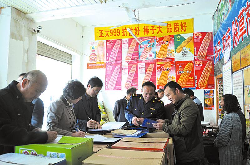 近日,商南县农业、工商、质监、公安等部门对全县农资市场进行联合执法检查,全面启动农资打假专项治理行动,严厉打击制售假劣农资坑农行为,依法维护农资市场生产经营秩序,保障农业投入品质量安全。(汪波摄)