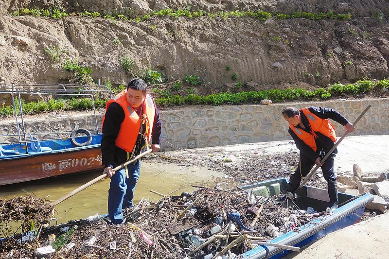 近日,二龙山水库管理处加大对库区流域的巡查,对库区垃圾及时清理,确保水源地水质安全,为观光游客创造优美环境。(见习记者谢非摄)