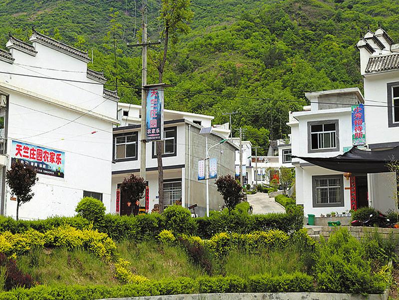 移民搬迁以前,天竺山脚下仅有几十户人家,住的是泥瓦屋和石板房。进沟的路,也是一条羊肠小道。全村303户人家,人均年收入不上3000元,生活十分贫困。天竺山森林公园建成后,从高山深沟移民搬迁来了126户人家,可土地、山林都在荒无人烟处,那些移民靠什么来生活呢?为此,县移民搬迁局给每个搬迁户补助3.5万元,专门从商洛新潮学院请来专家进行厨艺培训,帮助30余户人家搞起了农家乐等第三产业,一年净赚五六万元以上。同时,该村还有70多人参加景区服务工作。如今,放眼僧道关村,到处都是美景,一派迷人的田园风光。