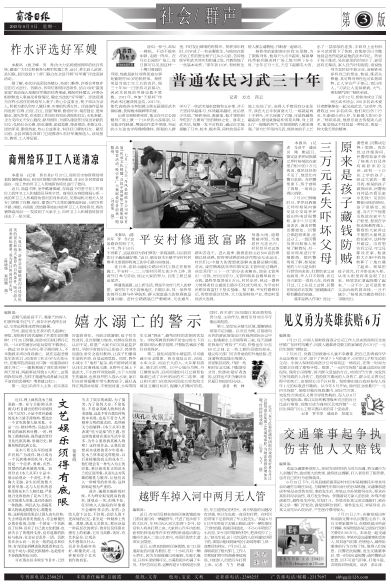 7月25日,党敬卫因救溺水儿童不幸遇难,把自己的青春年华永远定格在32岁,留下了怀孕7个月的妻子、6岁的儿子和年迈的父母。中国人保财险商洛分公司得知这一情况后,在第一时间为党敬卫办理了理赔手续。据悉,“一元民生保险”是通过政府出资投保、保险公司理赔、因灾群众受益的方式,对因自然灾害、突发性灾害导致的人身伤亡、抢险救灾期间的人身伤亡、群众见义勇为过程中的伤亡,由保险公司予以补偿。保险费由地方政府按每人每年1元的标准进行缴纳。从今年5月开始,商州区全面推行“一元民生保险”,保障对象在保险期内,因自然灾害、突发性灾害或见义勇为导致伤残的,每人以6万元为赔偿标准,乘以实际伤残等级所对应的百分比进行赔偿,党敬卫成为商州区北宽坪镇“一元民生保险”民心工程实施以来的首个受益者。记者 贾书章 通讯员 彭建文