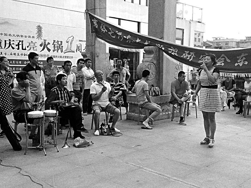 近日,东方红秦腔演唱团组织戏曲爱好者在丹江公园等群众集聚之处演唱秦腔,为纳凉的群众增加乐趣,传扬传统戏剧。(记者 方方 摄)