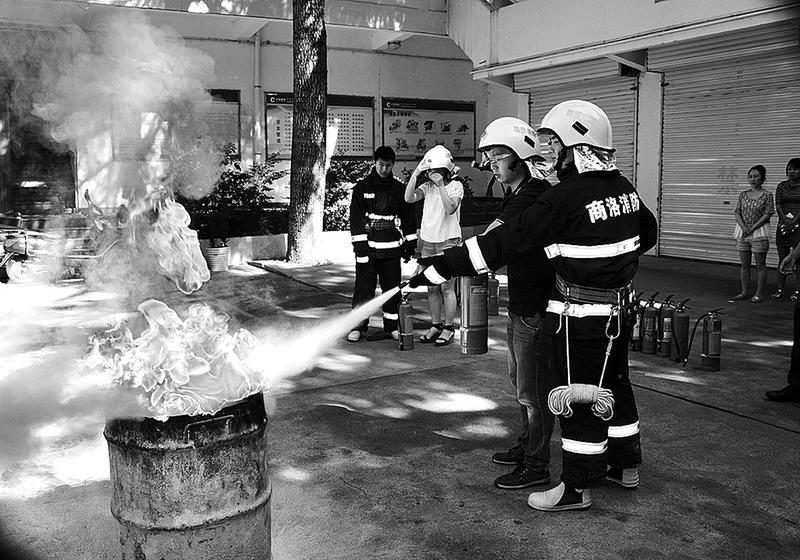 八月五日,柞水县消防大队来到县烟草专卖局,对该局干部职工进行消防安全培训,并指导开展消防疏散演练和灭火实战演习。(记者 方方 摄)