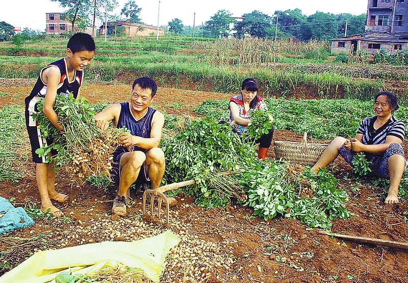 全家享受收获的喜悦 立秋之后,是花生成熟的季节。在商南农村,到处都是农人们采摘花生时忙碌的身影,看着满地金黄,喜悦的心情溢于言表。花生种植在商南有着悠久的历史,在困难年代曾是人们最好的充饥食品之一,也是商南人主要的油用原料。