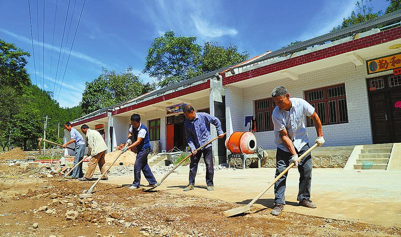 在临近江山村村委会的一个相对较为集中的院落,工队正为群众铺设入户路。这里的每个工队都优先照顾当地群众,工人基本都是项目区的群众。村民魏熊娃说,在家门口干活已快2个月了,一天150元,比外出打工收入要高。