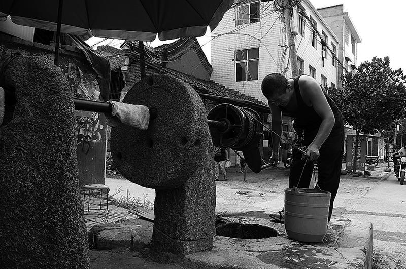 在商於古道阳城驿即商南县富水镇老街,有一口自汉朝流传下来的古井,虽经2000多年,但古井涌出的清泉依旧甘冽,不时有镇上的村民前来打水饮用。由于古井历史悠久,也吸引外地游客驻足参观,被当地人奉为“神泉”。(记者 王涛 肖云 摄)