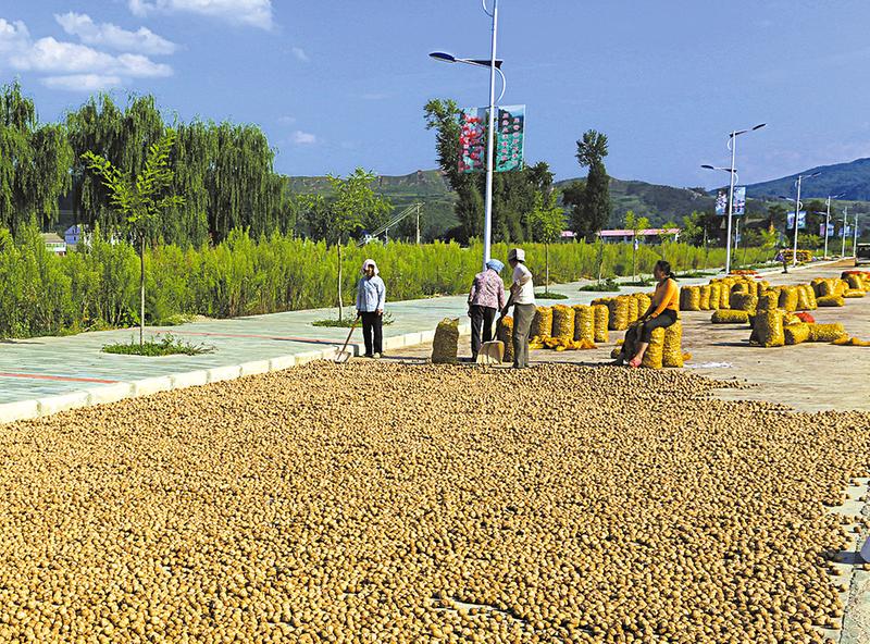 洛南县石门镇产业大户正在晾晒核桃,由于集约化经营,科管到位,核桃品质高。