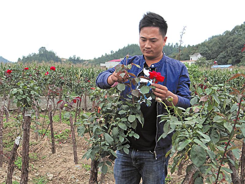 金秋九月,商南县富水镇年轻农民贺鑫正在他的“花园”里快乐地忙碌。学校毕业后,贺鑫选择回农村创业。他引进七里香蔷薇嫁接月季的技术,并栽培成功。目前,月季园已经步入正轨,已有客商前来订购明年的月季。(记者 王涛 左京 摄)