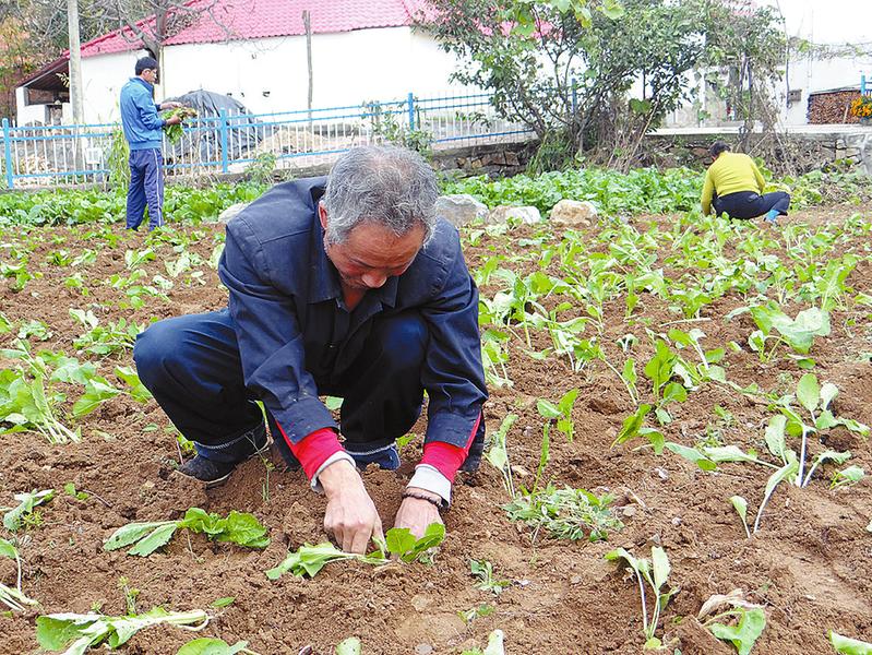 霜降刚过,商南县试马镇荆家河村八组村民冯致富和家人抢抓农时,栽种培育好的油菜苗。据悉,荆家河村为了打造美丽乡村,在道路沿线规划油菜风景区。(记者 左京 吉文艳 李亮 摄)