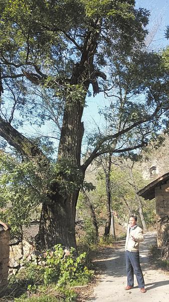 深秋季节,商州区金陵寺镇熊耳山村的一棵古槐葱葱郁郁,成为旅游爱好者凭吊历史、游玩观赏的景点。相传,古槐是闯王李自成兵败南阳退守熊耳山时亲手栽植,已有近400年历史。(记者 王涛 摄)