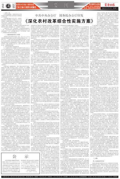 《深化农村改革综合性实施方案》