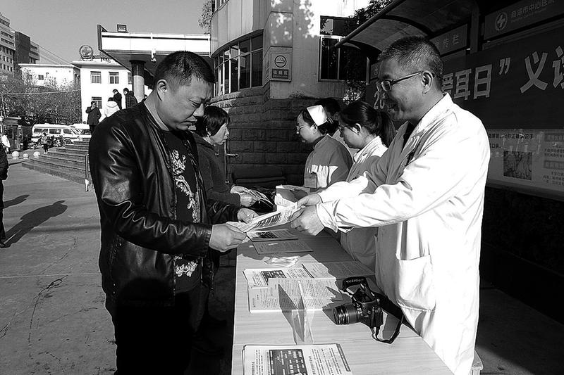 3月3日,市中心医院举办“爱耳日”义诊活动,医务人员为市民进行免费义诊并发放宣传单。据了解,今年是我国第17个“爱耳日”,主题为关注儿童听力健康。(记者 方方 摄)