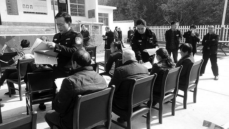 近日,丹凤庾岭派出所在庾岭镇和平村发放居民用电安全知识、食品安全、防诈骗等宣传资料,并对社会治安防控防范和各种形式的诈骗进行讲解,提高群众安全意识。(张民 摄)