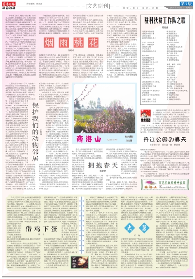 冬去春又来了,桃花开得正艳。在河边,在湖畔,在缓缓的山坡,或者陡崖峭壁,乃至小区庭院,若有一两树桃花开着,就感觉春的气息确实是扑面而来了。桃花总是格外惹眼。或掩映于绿柳间,或铺陈于青草地,只要有一抹新绿陪衬,桃花就会占尽风流。迎春花开得早,那时节还有些春寒料峭。到了桃花盛开,便是万物复苏,最是一年春好处,气候也已十分地宜人了。试想,若说没了桃花,春意盎然一词,还怎么能够成立呢?