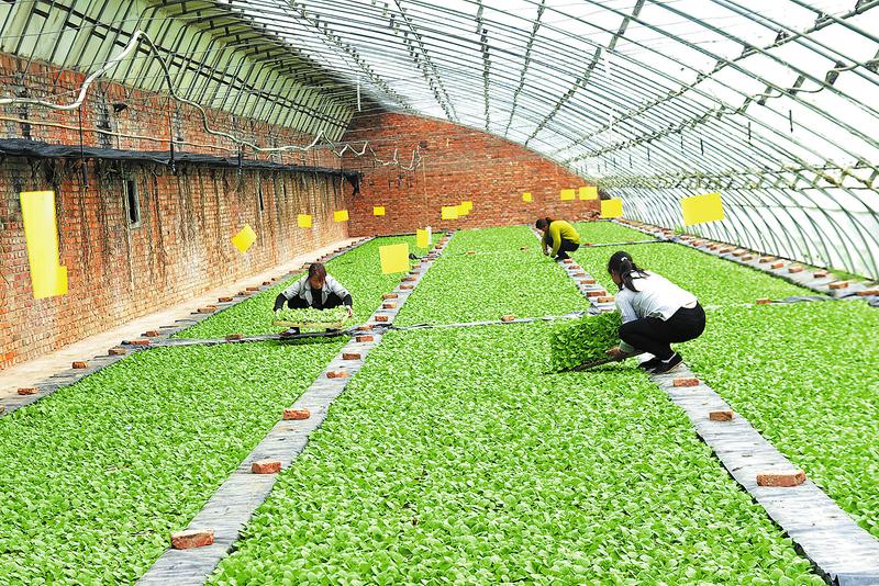 四月二十六日,洛南县古城镇蒋河村烟农在烤烟育苗大棚里科管除草。今年以来,洛南县精心组织烤烟现代化漂浮育苗工作,全县共漂浮育苗六十七点五万个营养盘,常规育苗二千一百一十五床,可满足烟田的栽植用苗。(程刚 摄)