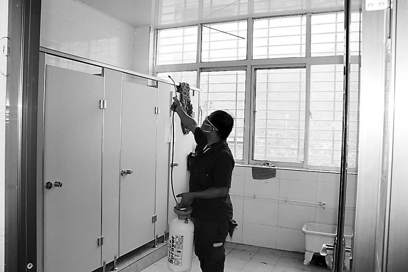 近日,丹凤县竹林关镇请陕西裕高生物工程有限公司,对该镇中小学校、村(社区)外环境、饭店厨房、垃圾桶(箱)、卫生间,医院、车站、机关单位公共区域,投放鼠饵,喷施杀灭蝇、蚊、蟑螂药剂,防止病媒生物滋生。(邢渭林摄)