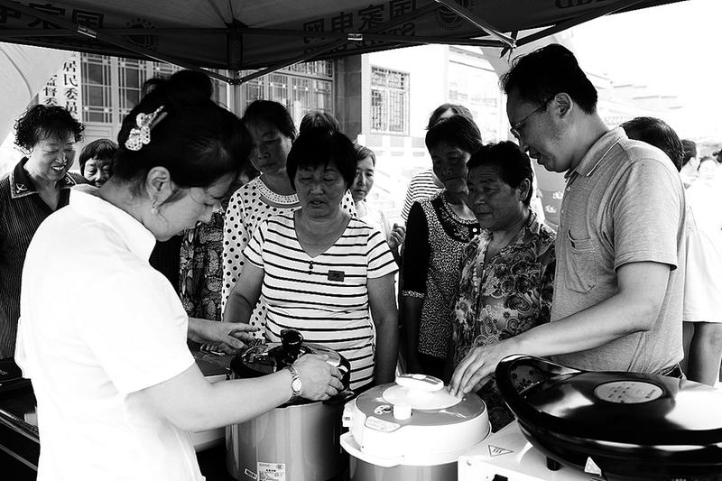 8月18日,商州区下赵塬村群众在家门口了解节能家用电器。当日,陕西省启动“电网连万家、共享电气化”主题活动。该活动聚焦新时期城乡居民用电需求,借助“互联网+”电力营销服务,推广智能家居技术和节能电器产品,将安全、绿色、高效、清洁电能推广普及到城乡居民生活的方方面面,大力提升城乡居民家庭电气化水平。(刘军峰 摄)
