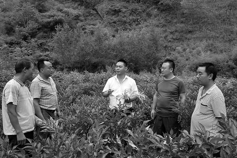 8月22日,山阳县委宣传部扶贫工作队积极联系农业植保站,深入两岭镇高塬村查找部分魔芋枝叶泛黄的原因,确保魔芋产业健康发展。魔芋产业项目是高塬村新培植的扶贫产业项目,通过发挥党员干部的带头作用,流转了10多户贫困户土地,进行魔芋产业化种植。(吴林峰 摄)