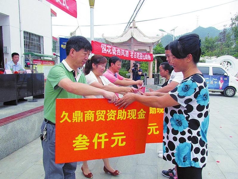 8月24日,由丹凤县工商联牵线搭桥,陕西久鼎酒业、陕西奥威矿业两公司为丹凤县13名家庭贫困大学生捐助3.4万元,帮这些家庭困难的学子圆了“大学梦”。(刘春荣 裴文翠 摄)