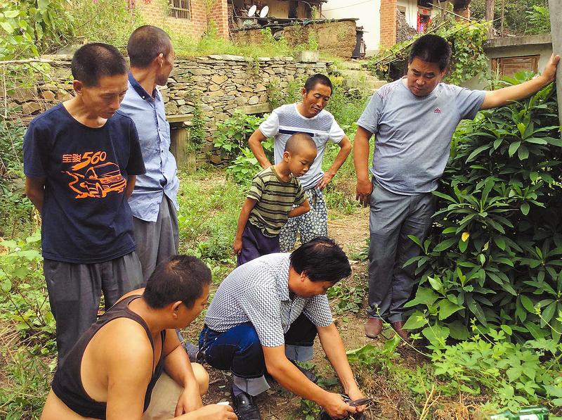 8月30日,商南县房管局包扶干部和畜牧专家在贫困户汪春生家里给一只鸡苗做解剖。原来,由于不懂养殖技术,金丝峡镇梁家湾社区贫困户汪春生从河南购回的500多只鸡苗患上了呼吸道支气管炎,不吃不喝。得知这一情况后,商南县房管局包扶干部立即联系了畜牧专家上门诊治,并开出了药方。目前,患病鸡苗正在逐步恢复健康。(记者 王涛摄)
