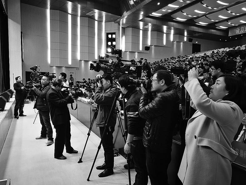 ▷省市十余家媒体聚焦我市第四次党代会。(记者 李小龙 杨鑫 摄)