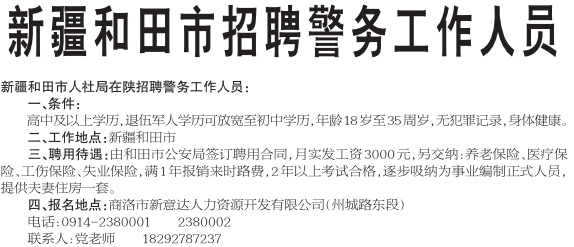 新疆和田市招聘警务工作人员