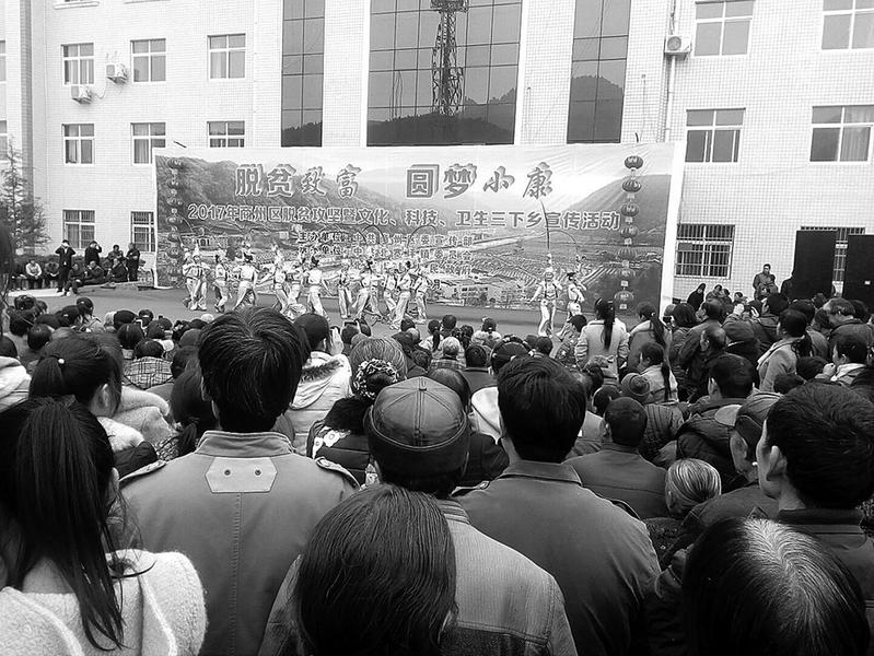 2月17日,由商州区委宣传部、文工团、北宽坪镇联合举办的商州区脱贫攻坚暨文化、科技、卫生三下乡活动在北宽坪镇举行。现场为群众普及科技、政策、医疗知识,发放宣传册,同时免费监测血糖。(彭建文 摄)