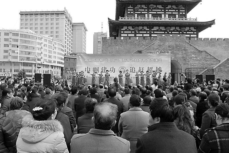 ▶3月5日,由商州区妇联、区巾帼志愿者主办的“巾帼建功追赶超越”庆祝“三八”国际劳动妇女节文艺演出在望江楼举行,演出包括旗袍秀、快板、灯笼舞等节目,展示了广大女性积极向上的精神风貌。(记者方方摄)