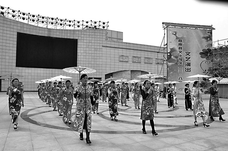 ▲“三八”妇女节前夕,商南县文化馆组织县旗袍协会会员在县文化广场举行旗袍秀展演活动,充分展示了女同胞们的靓丽风采和精神风貌。(特约记者 孙传卿 通讯员 魏华摄)