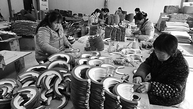 洛南县三要镇龙山村原有一个私人灯笼作坊,条件十分简陋,生产效率低下,常常是有订单却没有生产能力,2014年,龙山村委会通过和致富能人联合经营的形式,成立了宏达工艺品加工专业合作社,通过阿里巴巴网站接收订单,按照订单要求组织群众进行生产,产品主要出口欧洲和东南亚等地,年收入达600万元。据悉,该合作社成立三年来,解决了全村120余名剩余劳动力的就业问题,带动了30户贫困群众脱贫致富。(记者 肖云摄)
