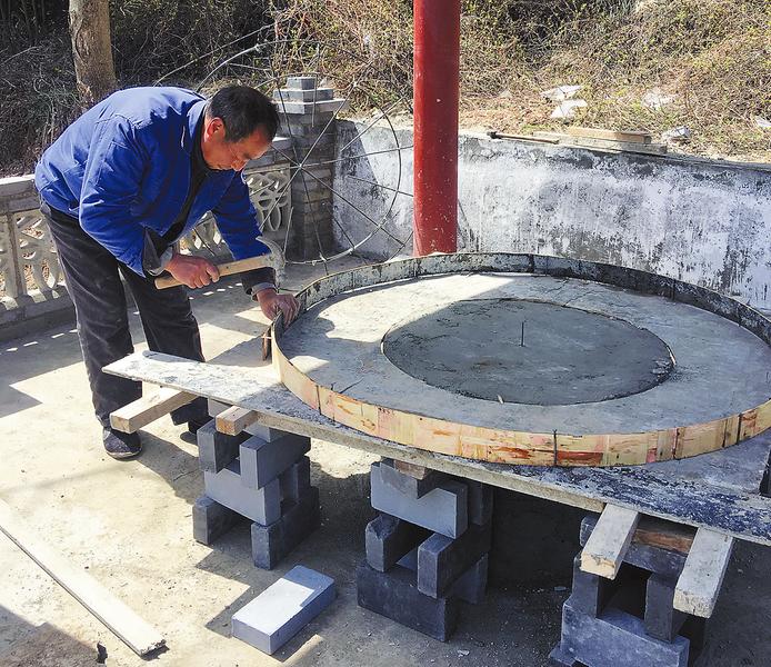 日前,商州区北宽坪镇美丽乡村项目正在抓紧建设中,图为工人正在制作农村传统碾盘,为美丽乡村增添民俗景点和民俗乐趣。
