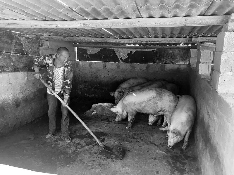 5月25日下午4点多,山阳县十里铺镇郭家村六组的崔忠宝正忙着清理猪圈的猪粪。他一边忙活一边对我说:“刚开始干部鼓励我养猪的时候,我这心里没底,实在不敢弄,没想到,去年一下收入了一万多,这下我有信心了。”