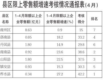 县区限上零售额增速考核情况通报表(4月)