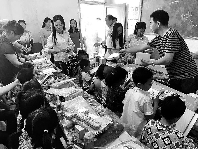 “六一”儿童节前夕,山阳县一爱心志愿者协会联合山阳县农产品质量安全检验检测站志愿服务队来到山阳县法官镇韩城沟教学点,开展“为了明天关爱儿童”志愿服务活动,志愿者与孩子们一起点蜡烛,吃蛋糕,并为孩子们送去了书包、文具盒等学习用品。(记者 王倩 摄)