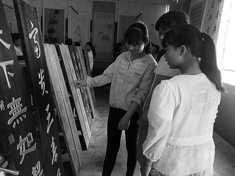 6月21日,张军锋书画雕刻作品巡回展暨商洛书画家作品邀请展在商州区板桥镇中学举行,展出书法作品110幅,绘画作品21幅,雕刻作品35幅,邀请书画名家作品25幅。该活动旨在引导中学生欣赏国学,传承优秀传统文化。(记者 吉文艳 摄)